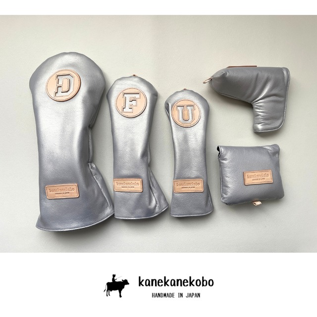 組み合わせ自由【1セット限定販売・名入れオプション無料】シュリンクホワイトシルバー牛革ヘッドカバーセット
