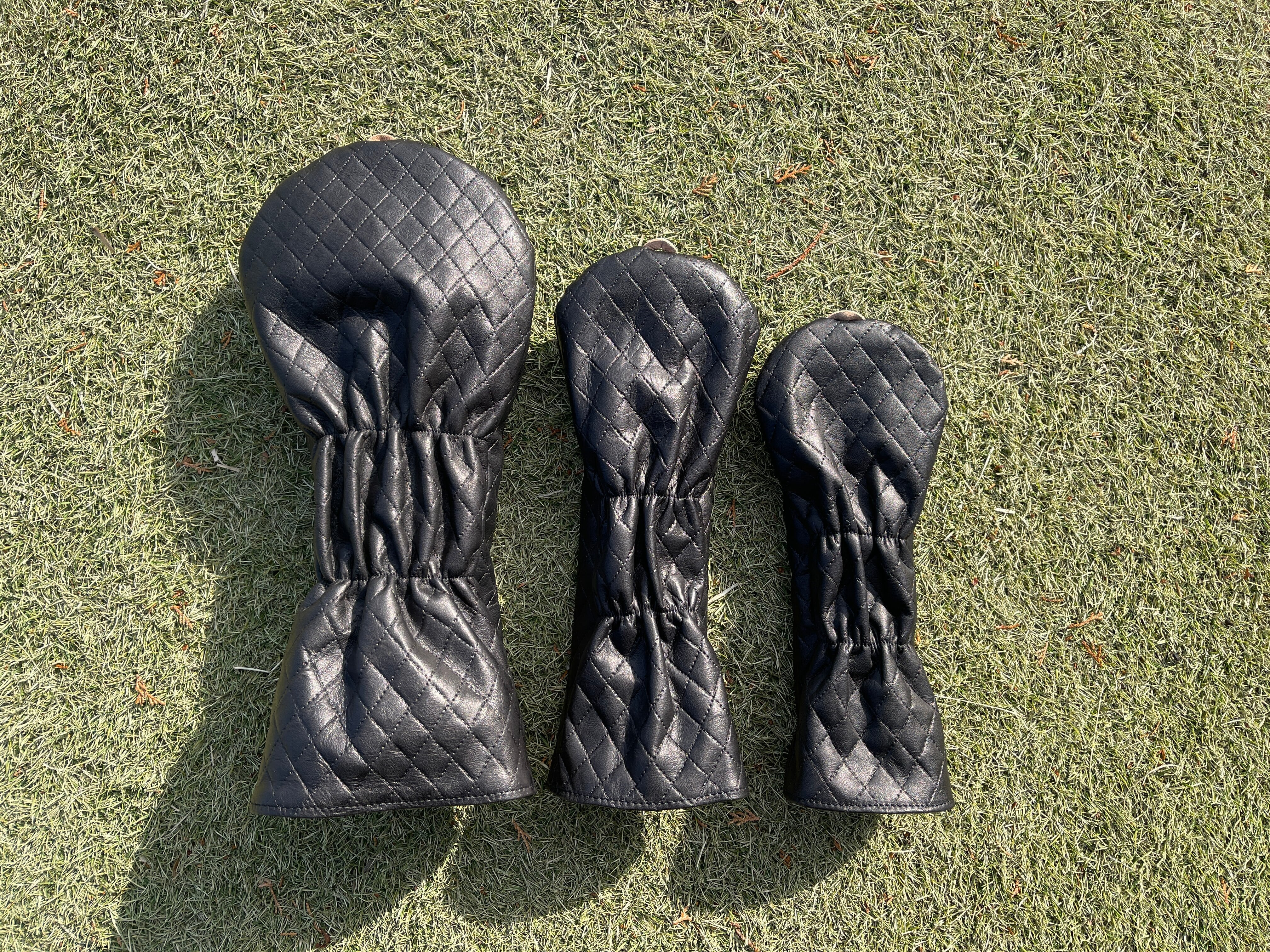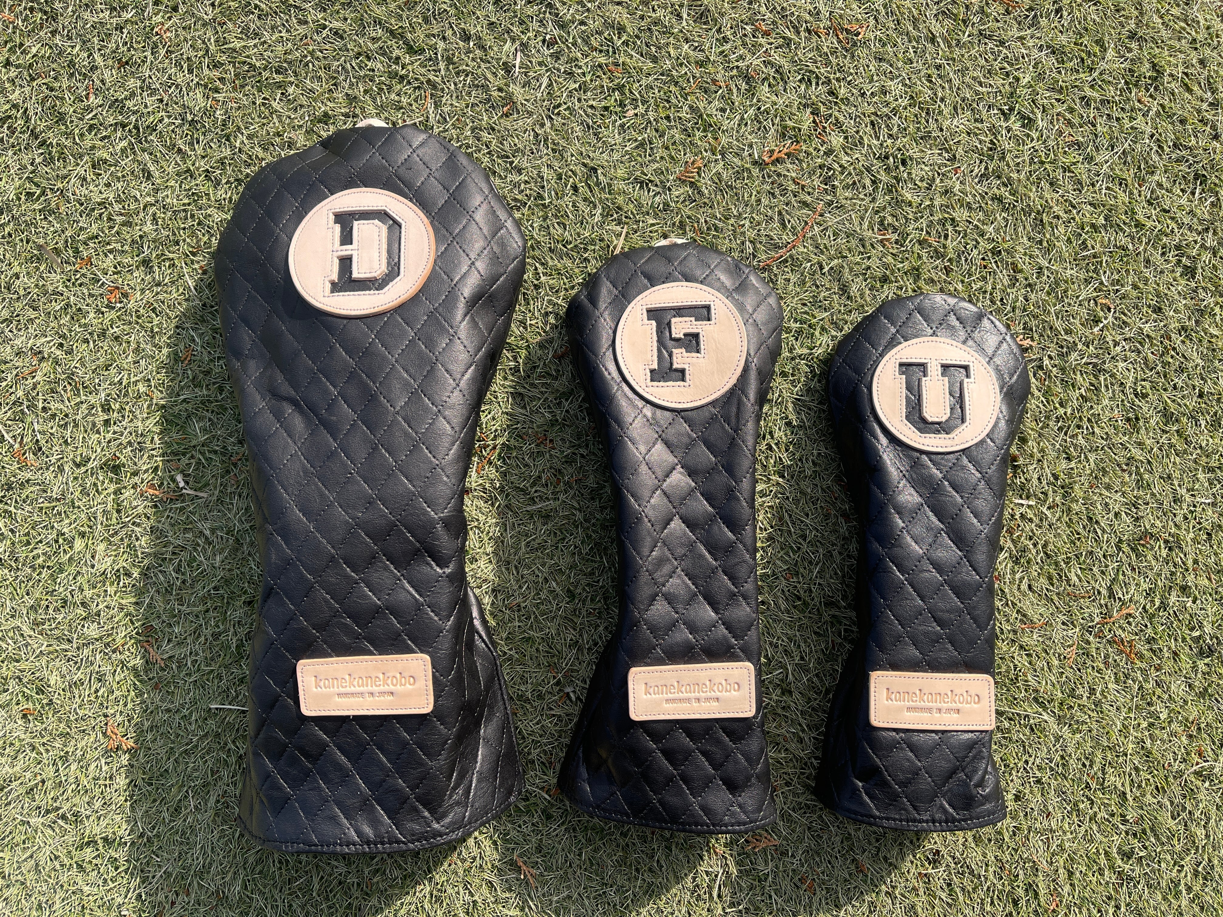 組み合わせ自由【1セット限定販売・名入れオプション無料】 キルティング型押し牛革ヘッドカバーセット