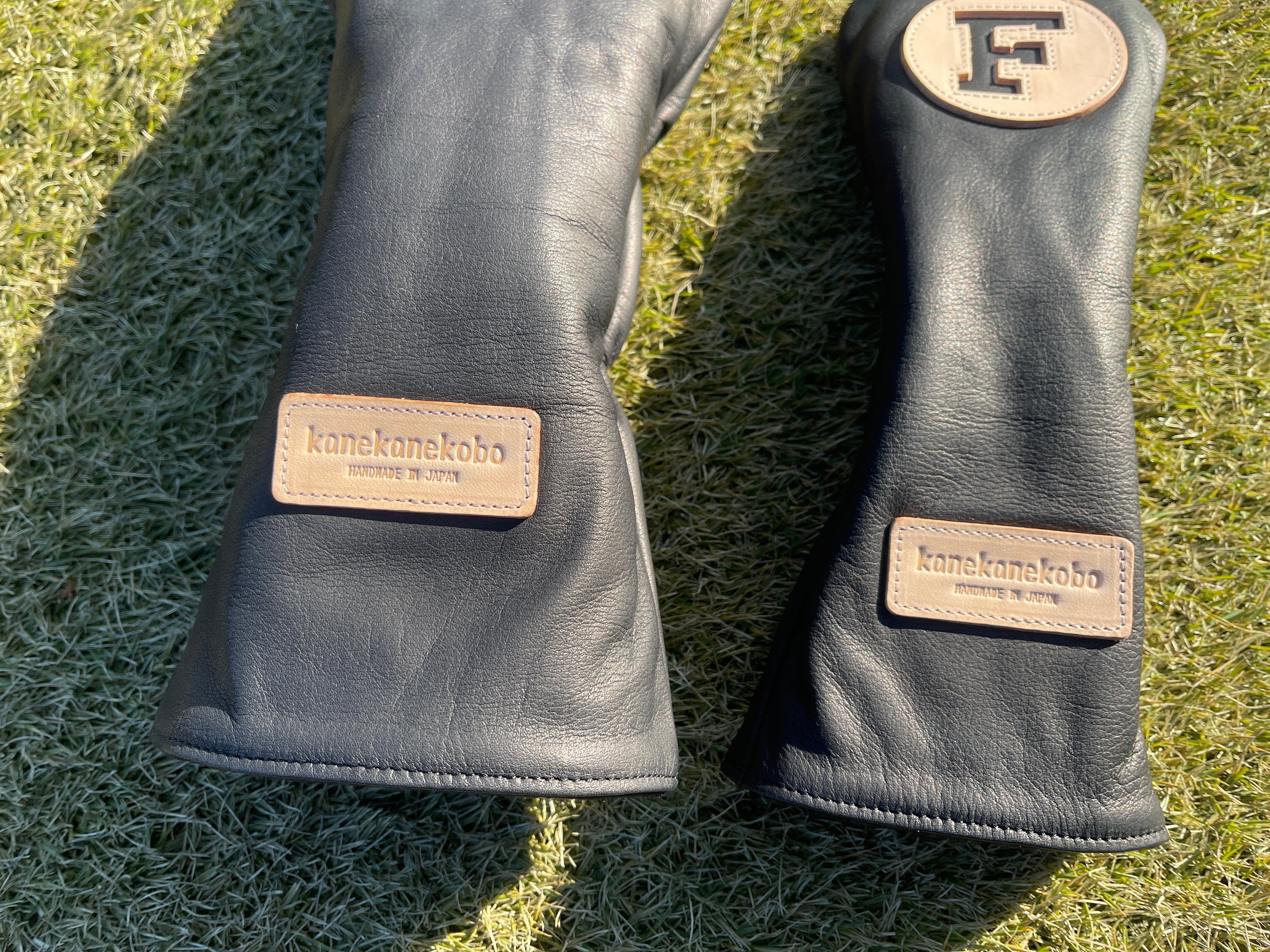 多いもので1枚の革から3セットのみで、そこにお名前をレーザー彫刻でお入れすることでご自身だけのヘッドカバーが出来上がります。