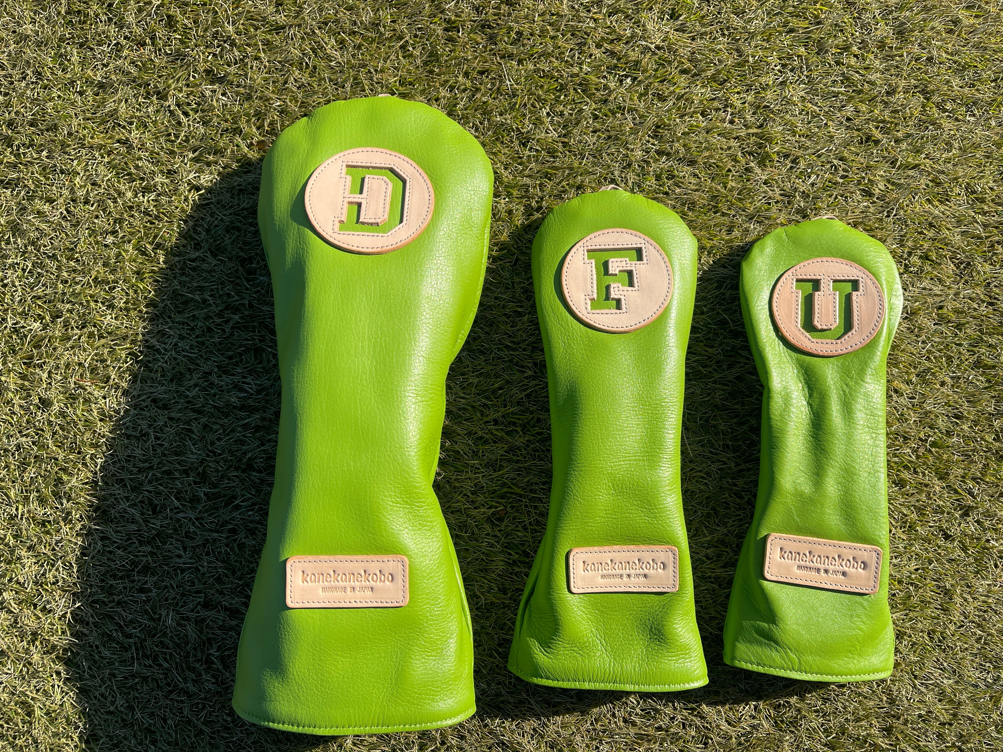 多いもので1枚の革から3セットのみで、そこにお名前をレーザー彫刻でお入れすることでご自身だけのヘッドカバーが出来上がります。