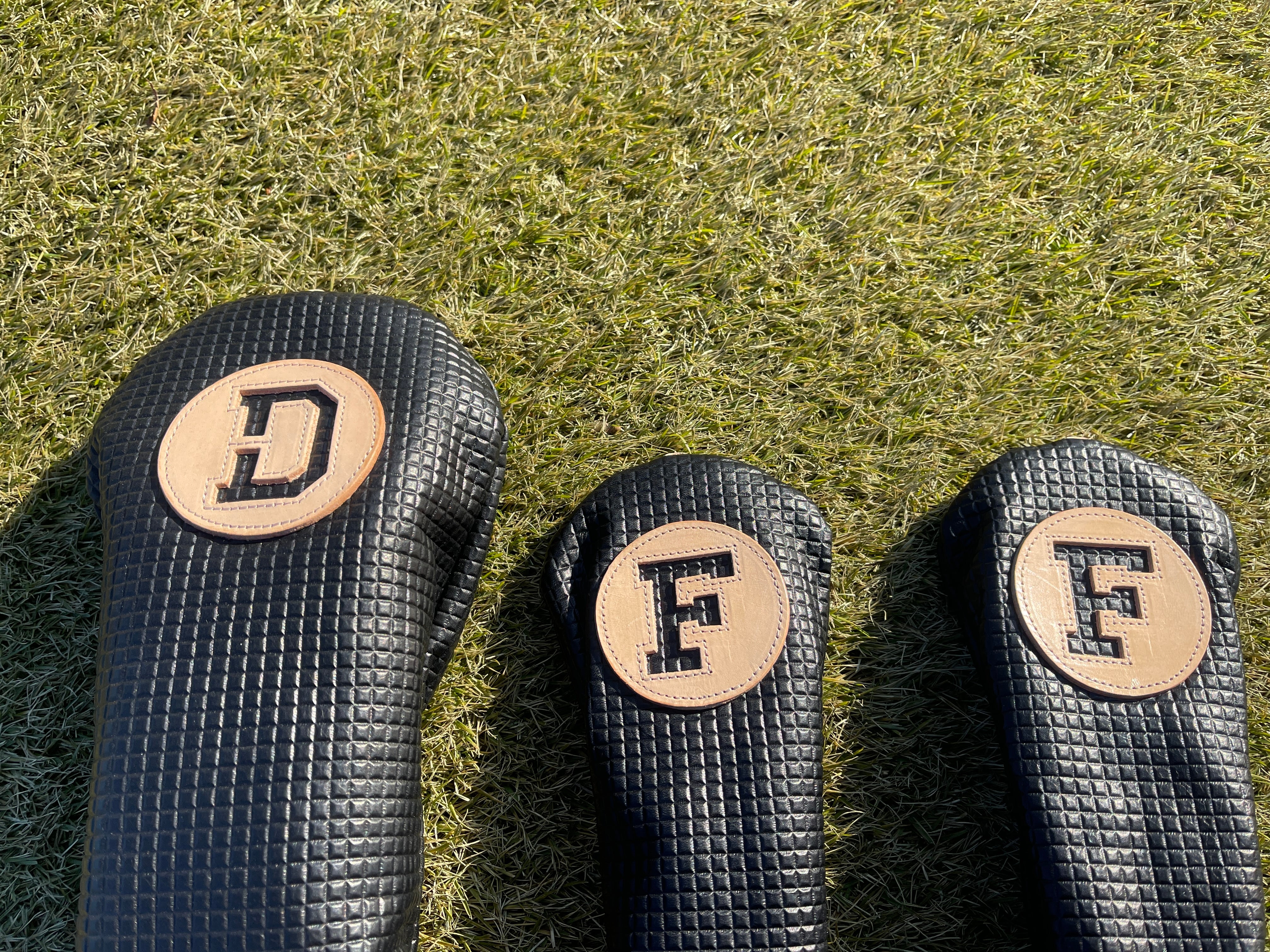多いもので1枚の革から3セットのみで、そこにお名前をレーザー彫刻でお入れすることでご自身だけのヘッドカバーが出来上がります。