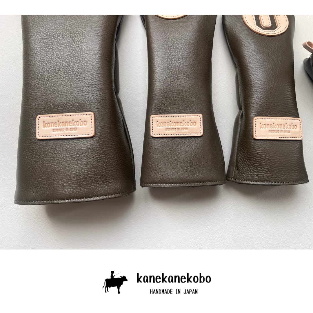 別のブランドで使われており、廃盤となった革を使用した本革のヘッドカバーセットです。