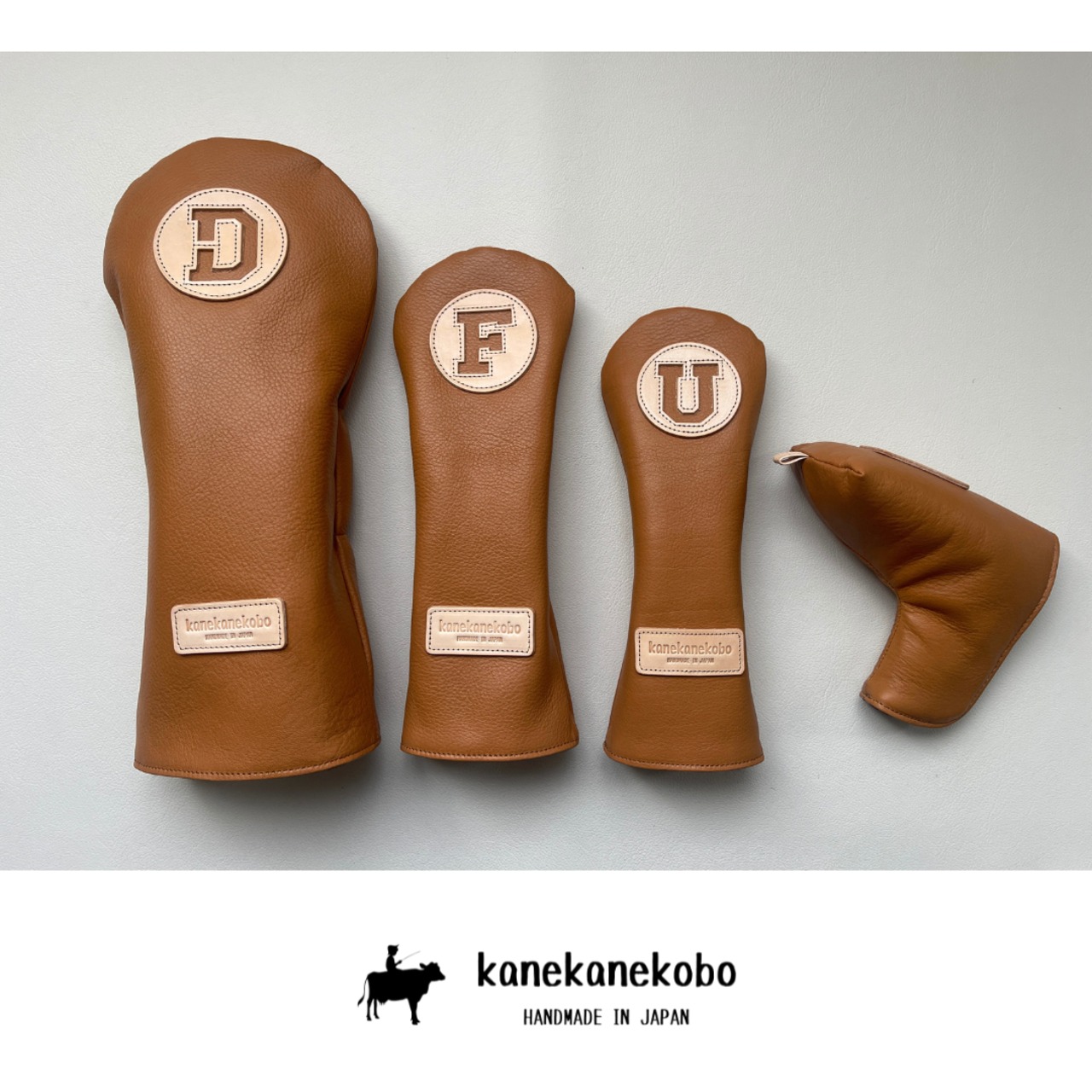 別のブランドで使われており、廃盤となった革を使用した本革のヘッドカバーセットです。