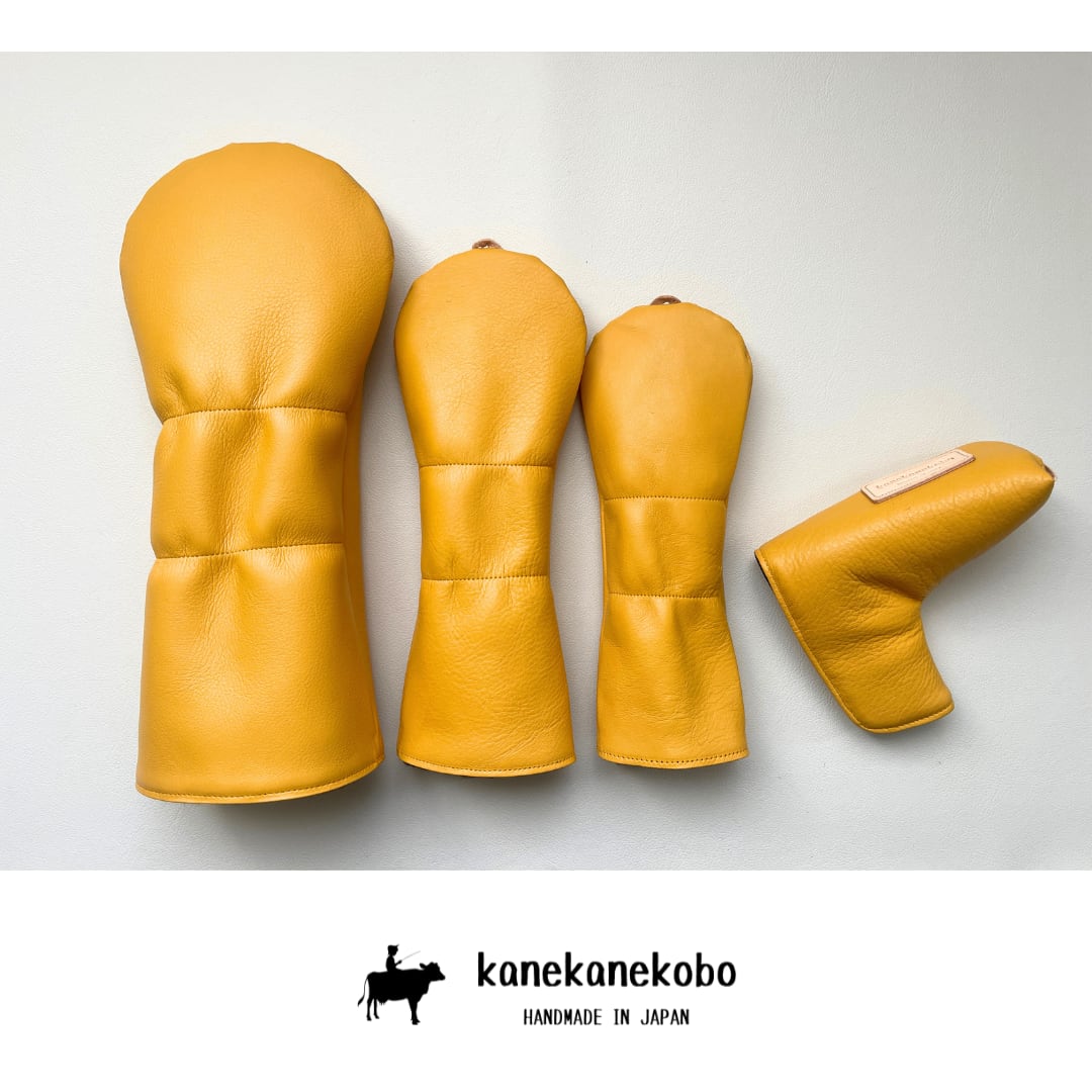 別のブランドで使われており、廃盤となった革を使用した本革のヘッドカバーセットです。