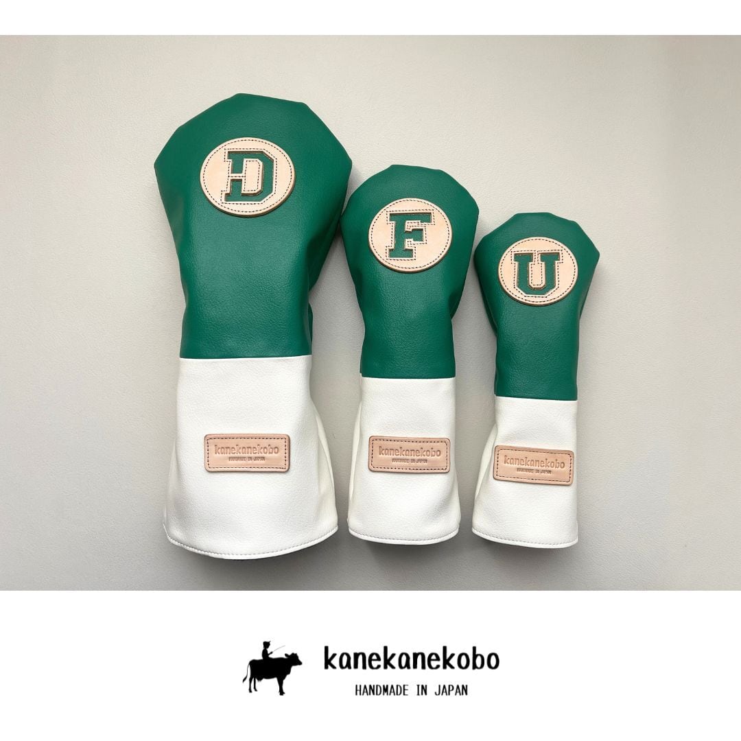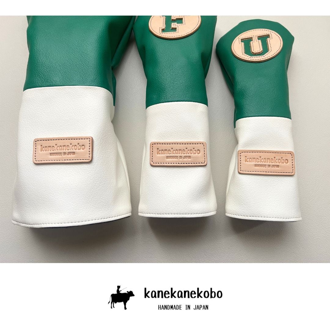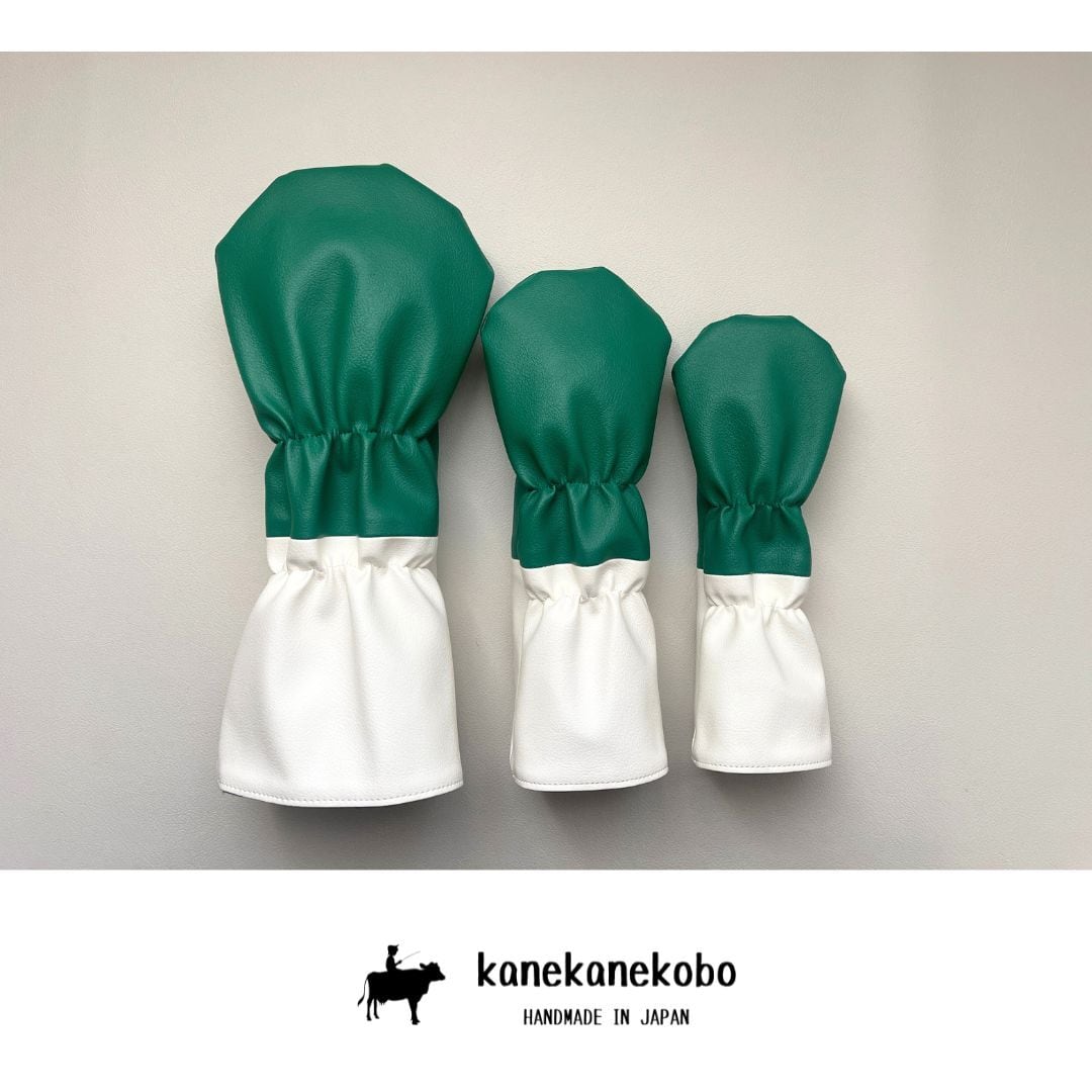 組み合わせ自由【1セット限定販売・名入れオプション無料】グリーン&ホワイト合成皮革ヘッドカバーセット