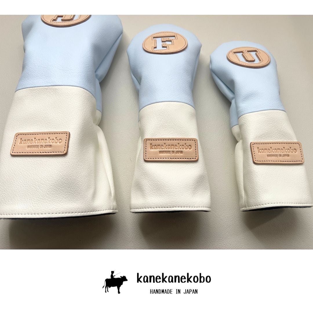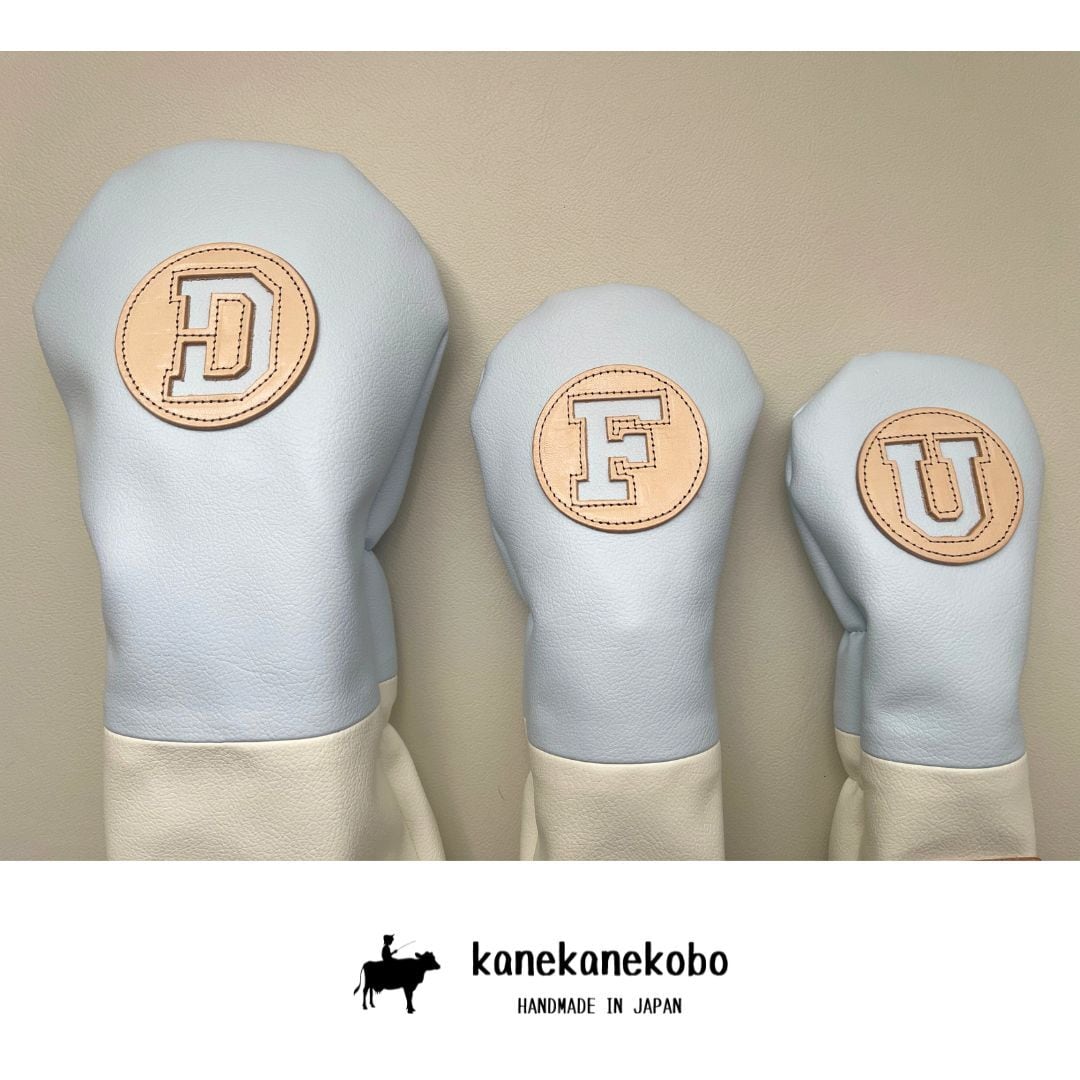 オーダーメイドで使用した合成皮革の端材を使用したヘッドカバーセットです。
