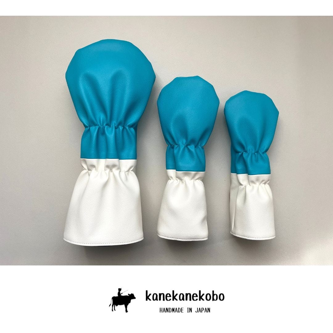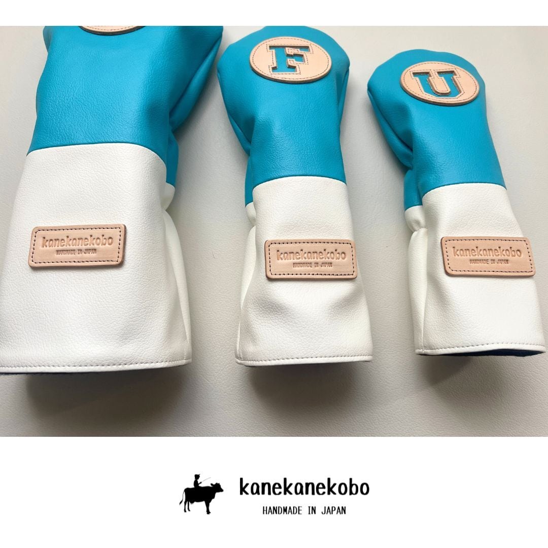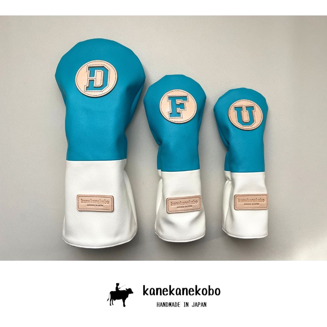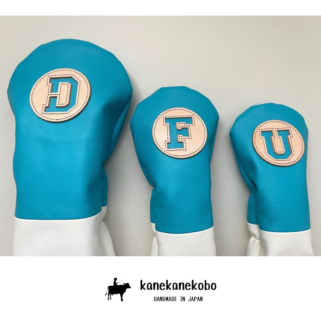 オーダーメイドで使用した合成皮革の端材を使用したヘッドカバーセットです。