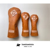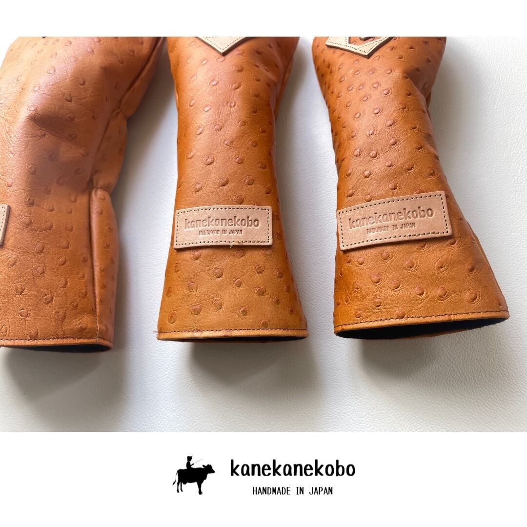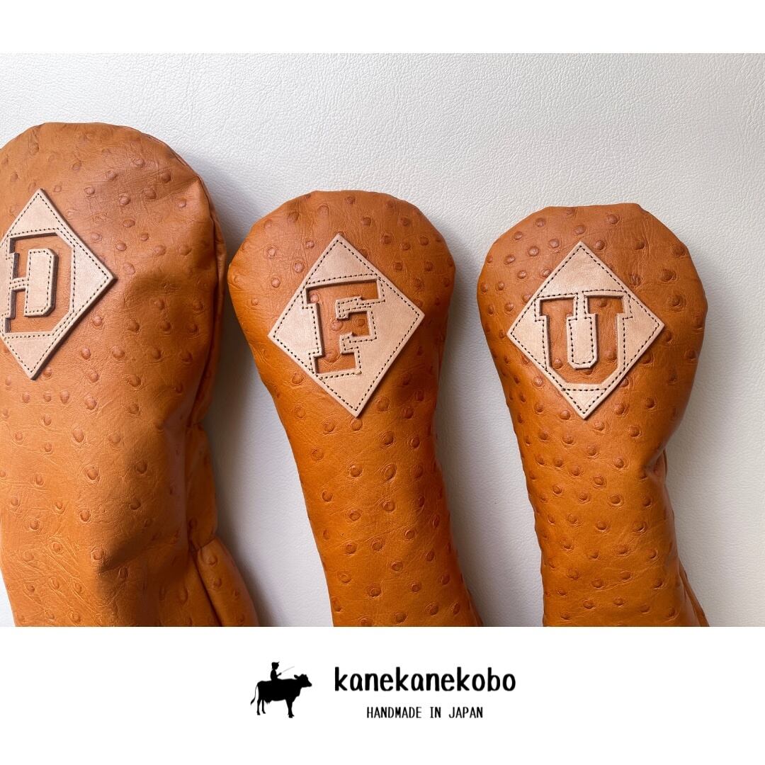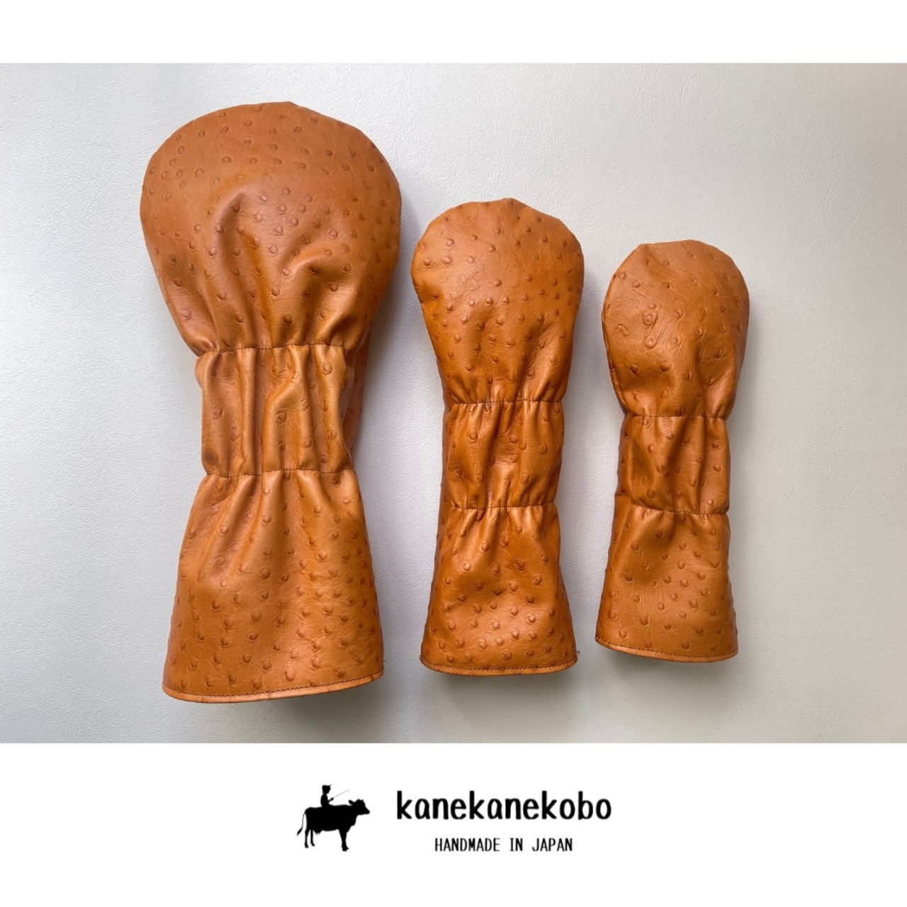 オレンジオーストリッチ型押し牛革のヘッドカバーセットです。