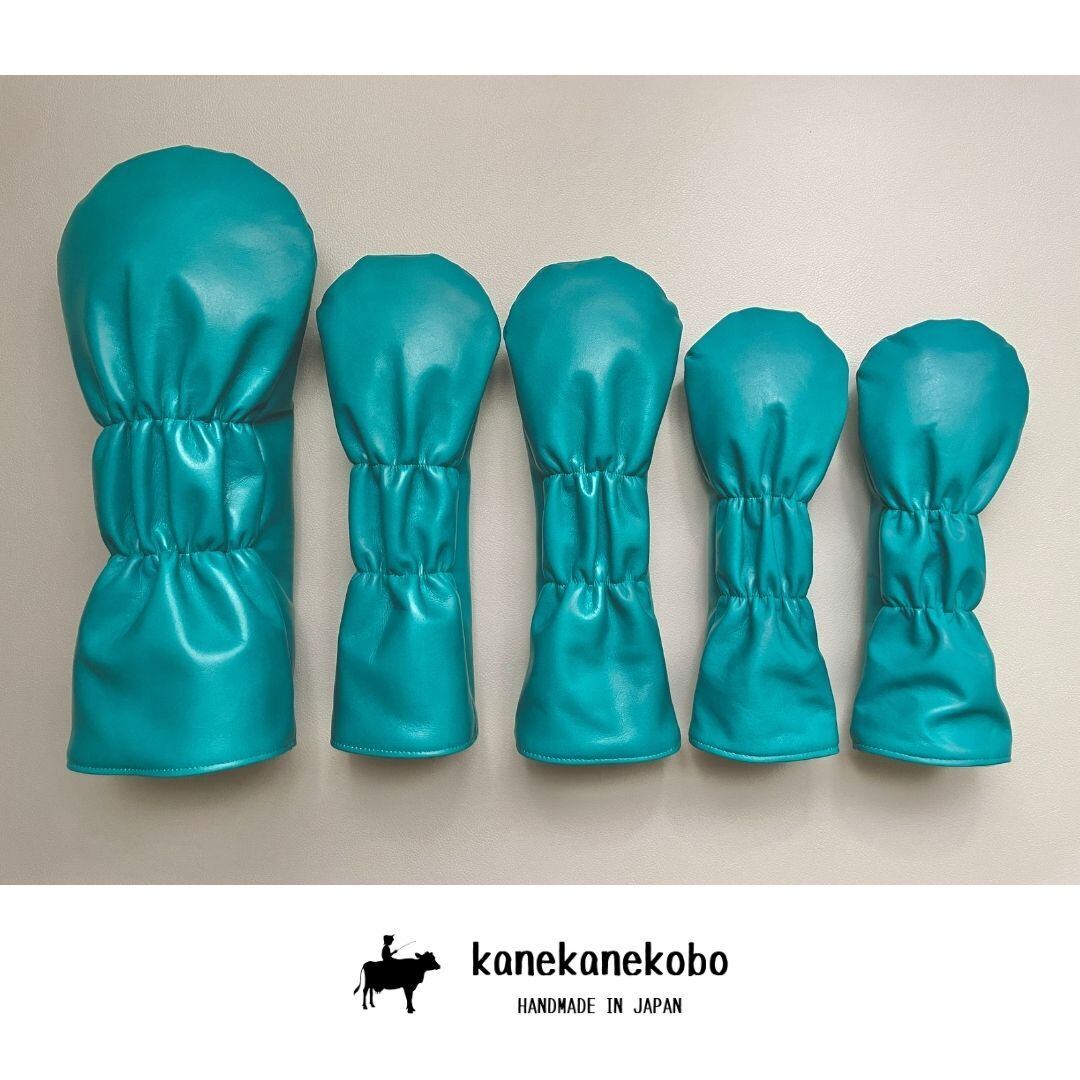 【Set】Turquoise Leather ソフト牛革ヘッドカバー5本セット【1点ものにつき再販不可】