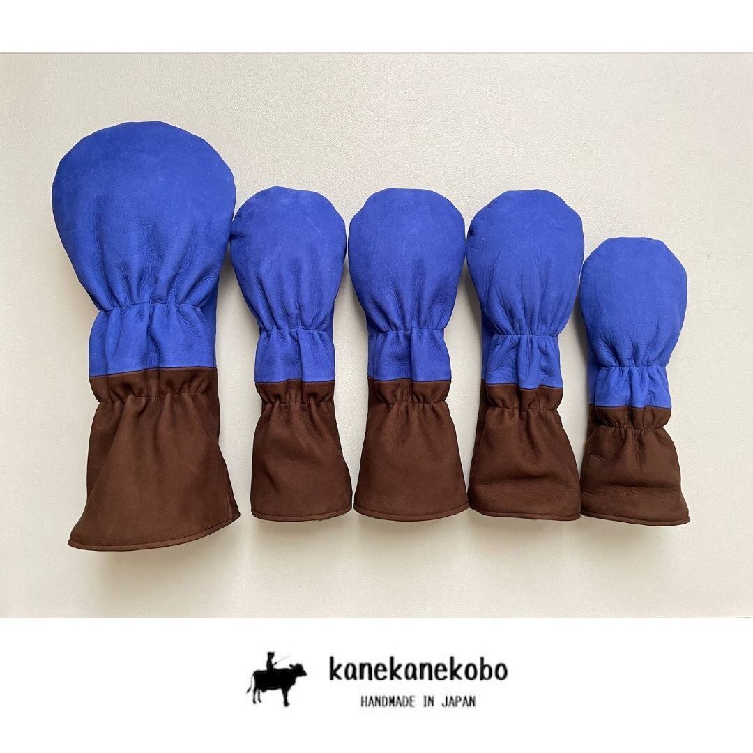 【Set】Nuback Blue & Brown Leather ソフト牛革ヘッドカバー5本セット