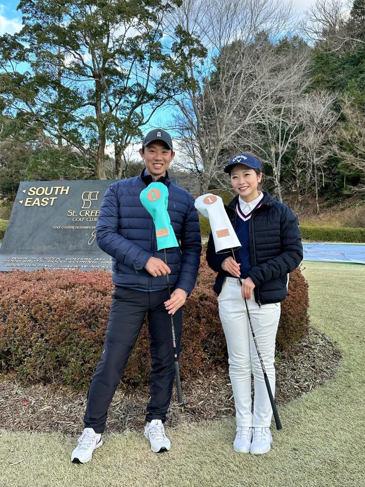美男美女のご夫婦からお揃いのヘッドカバーで